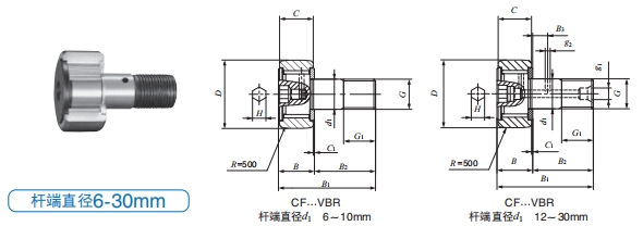 CF…B:标准凸轮从动轴承(IKO品牌);