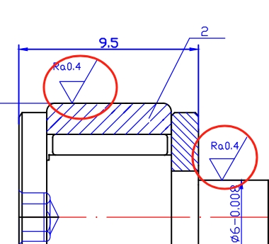 上图中,外圈及螺杆的表面标注的Ra0.4表示表面轮廓的平均偏差为0.4,属于精密加工范围,通常通过精密磨削实现,有效降低滚动摩擦。