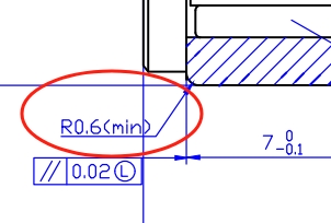 圆角R0.6表示在零件边缘形成的圆弧过渡,其半径为0.6mm。