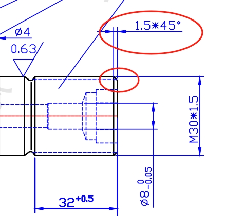 倒角1.5*45°表示在零件边缘形成的斜面过渡,其轴向长度为1.5mm,斜面角度为45°,